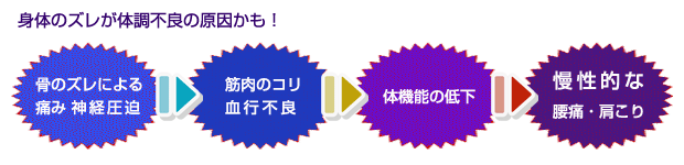 カイロプラクティックは、事故や長年の習慣、無理な運動などによる骨格のゆがみが